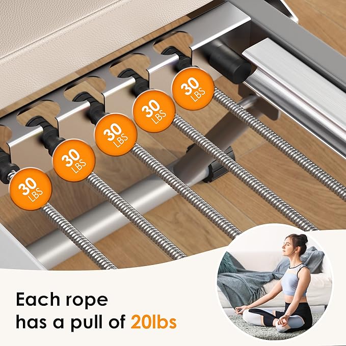 - DOUBLE RESISTANCE- This Pilates machine not only has spring pull, but also our complimentary 5 colorful elastic ropes, double resistance is suitable for advanced, intermediate and beginning scholars, and contains 11 power options. It is designed to build strength and support your body in different muscle exercises to create the perfect body for you!