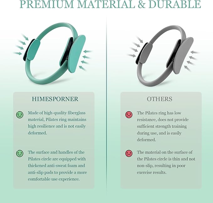 - 【Pilates Ring and Ball】: 12 inch Pilates Ring is made of high-quality elastic fiberglass, covered with comfortable sweat-proof sponge, and the handles are equipped with thick foam pads. 9 inch Pilates ball is non-slip and durable, and comes with a straw for easy inflating. They can effectively help you complete most Pilates movements and strengthen your core and whole-body muscles