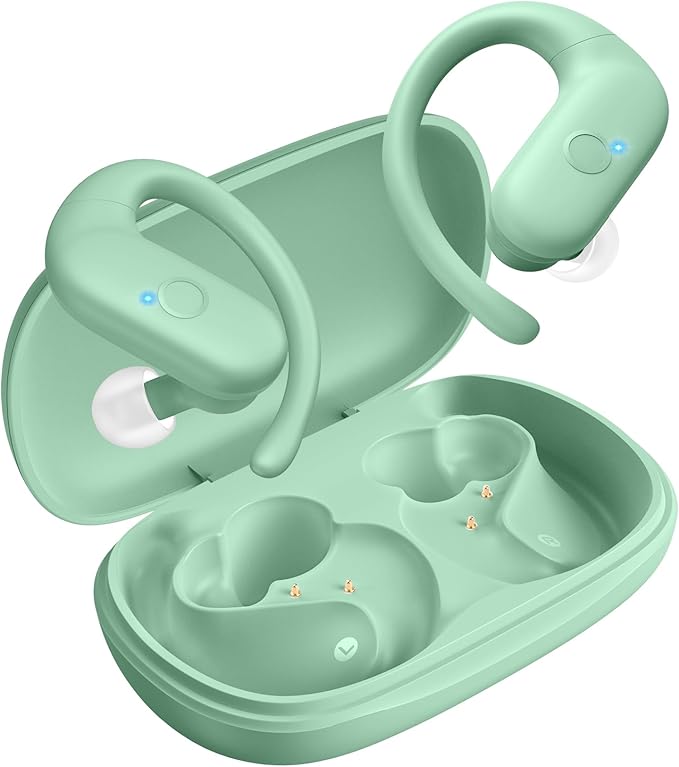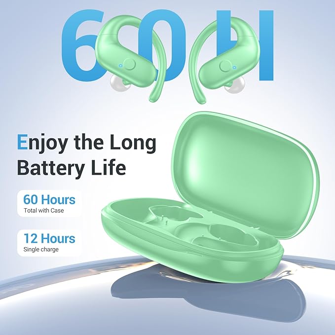 for Wireless Earbuds,Sport Bluetooth 5.4 Headphones,Over Ear Buds with Deep Bass Sound,60H Playtime Clear Calls Earphones Redesigned Comfort Fit with Earhooks for Running,Meeting,Workout-Green