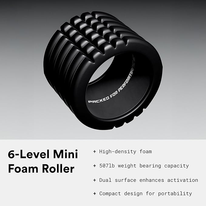 - 6-Level Mini Foam Roller: Featuring a patented design, high-density foam for deep tissue relief, and a 507lb weight bearing capacity, our foam roller is one of the world’s strongest mini foam rollers. Its dual surface enhances activation and recovery, while its compact design ensures portability. Built to perform anywhere, it’s the ultimate recovery tool.