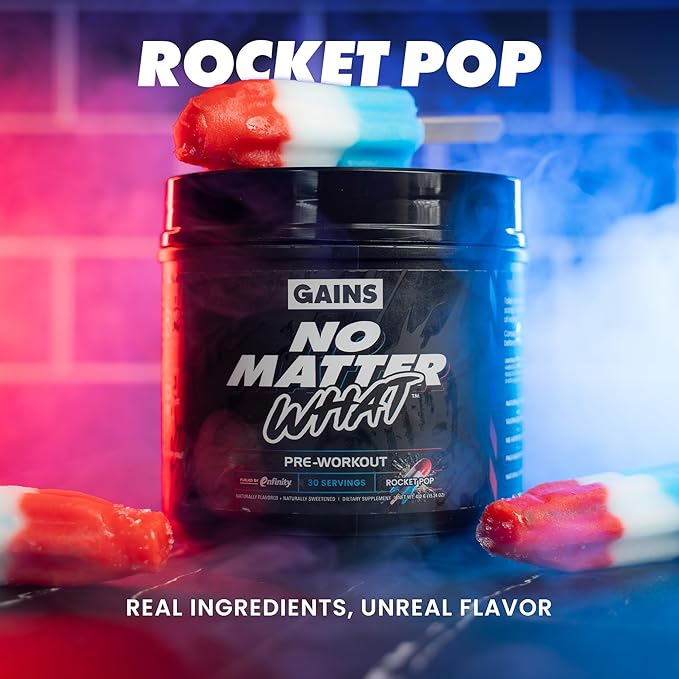 Gains in Bulk No Matter What Pre Workout Powder, with Paraxanthine, Amino Acids & L Theanine, Training Supplement for Athletes & Active Lifestyles, Energy & Focus Support, Rocket Pop, 30 Servings