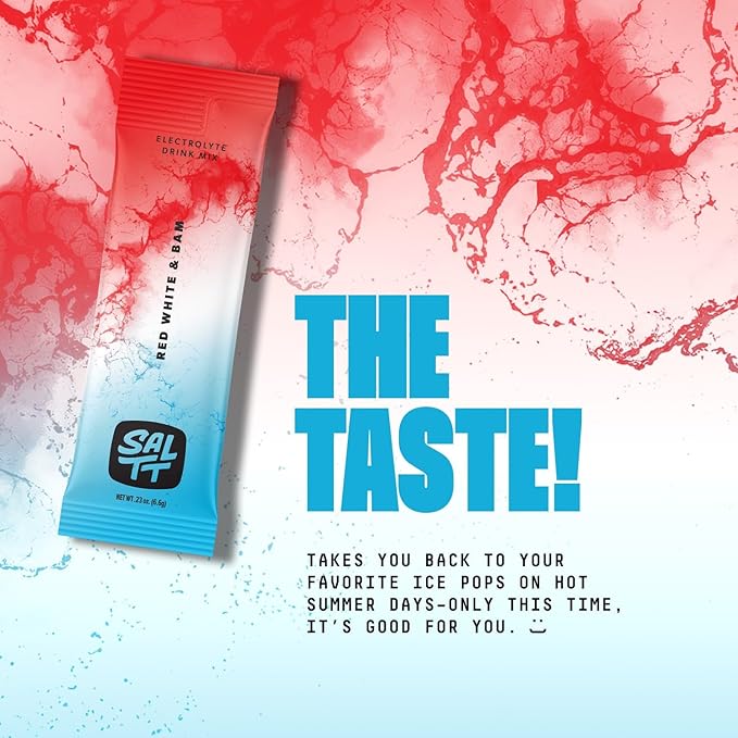 SALTT Electrolytes Powder Drink Mix - Red White and Bam- 30 Hydration Packets - Magnesium, Potassium, Sodium, Trace Minerals - Zero Sugar & Gluten Free - Travel Essentials
