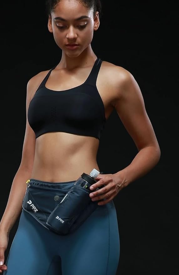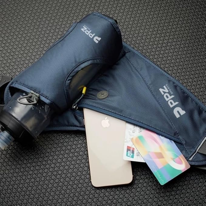 PPZ sports waist bag with bottle rack, waterproof, 2 pockets, adjustable belt - suitable for running, fitness, jogging and outdoor activities (blue)