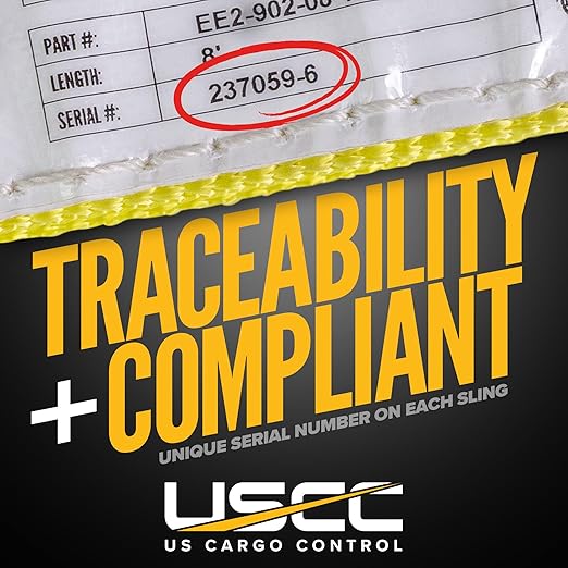 - UNIQUE SERIAL NUMBER - Our Made in the USA nylon hoisting straps have a sewn leather ID tag showing a unique serial number, manufacturer, and load ratings. US Cargo Control is an AWARF accredited manufacturer and a member of LEEA.