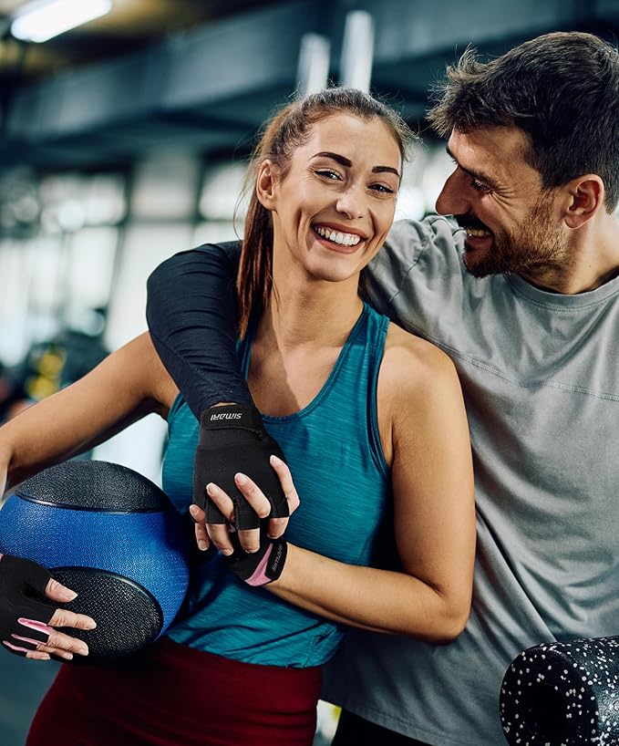SIMARI Breathable Workout Gloves for Men & Women, Weight Lifting Gloves with Padded, Grip, Full Palm Protection, Gift for Gym Exercise, Cycling, Weightlifting Training, Fitness, Black, Pink, Size