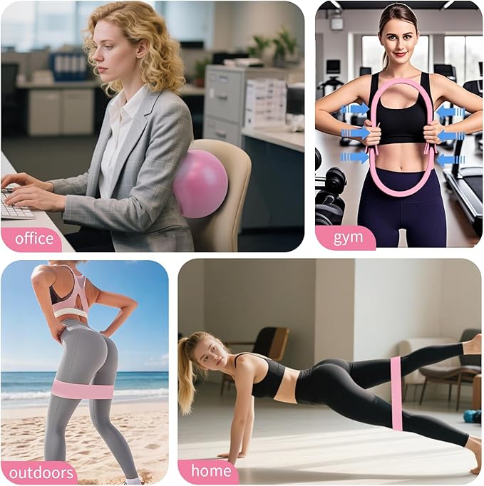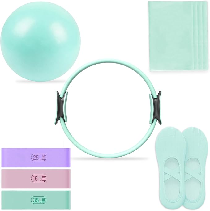 - โ Complete Starter Set for Every Need: Our Pilates Kits includes a 14" magic ring, 9" anti-burst mini ball, 1pc long resistance bands, 3 level pilates loop bands,non-slip socks, and a workout guideโperfect for toning your core, thighs, arms, and glutes. Ideal for beginners and pros alike!