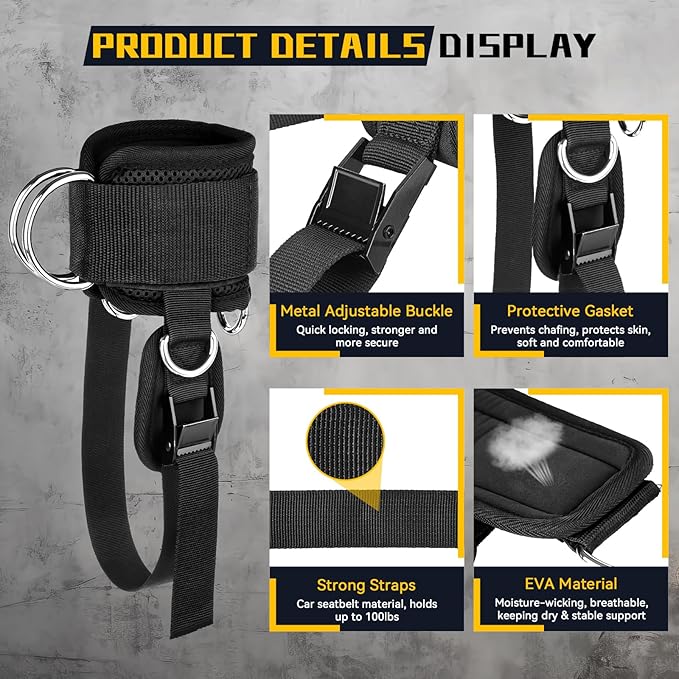 - 【Perfect Choice for Leg Training】- KELEEL ankle straps for cable machines can be used in addition to the gym link to the cable machine, but also with various weight dumbbells. Just put on the ankle strap and you can start enjoying efficient exercise anytime, anywhere. With this kickback ankle strap, you can perform dozens of leg training movements (leg curls, flat raises, donkey kicks, leg extensions, knee raises, leg raises, hip kicks, side kicks, etc.), which is perfect for your leg training.