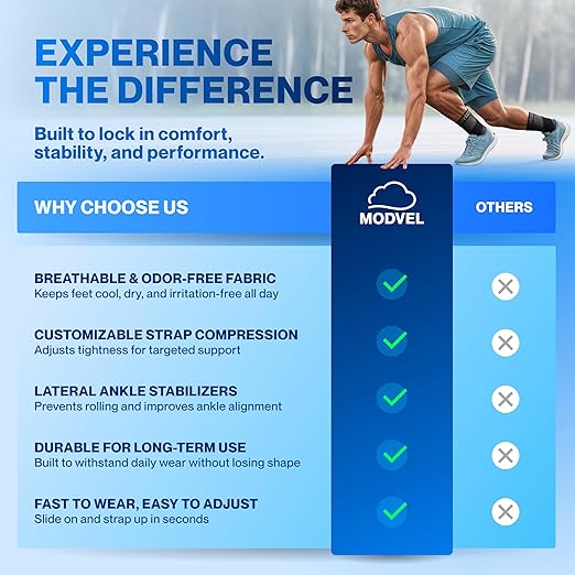 Modvel Foot & Ankle Brace Socks with Adjustable Support Strap – Compression Sleeve for Sprained Ankle, Plantar Fasciitis Relief Tendonitis & Arthritis, Stabilizing Foot & Ankle Support for Women & Men