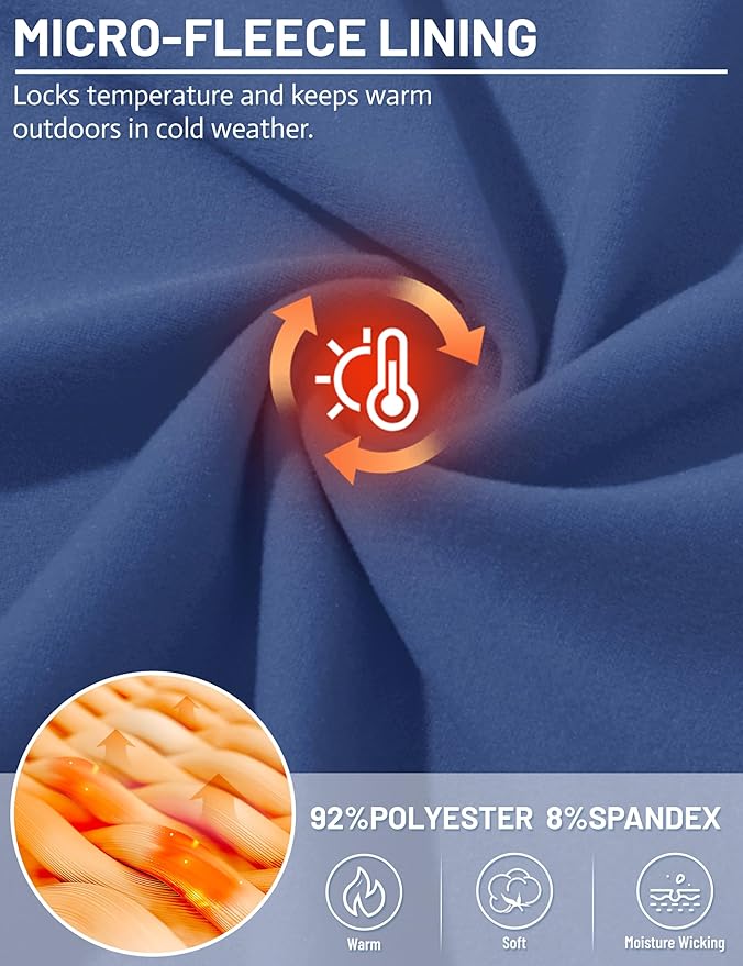 - Warm fabric:Mens long sleeve thermal shirt is made of fleece lined material with 92% Polyester, 8% Spandex to locks your temperature, keeps you warm in cold weather.