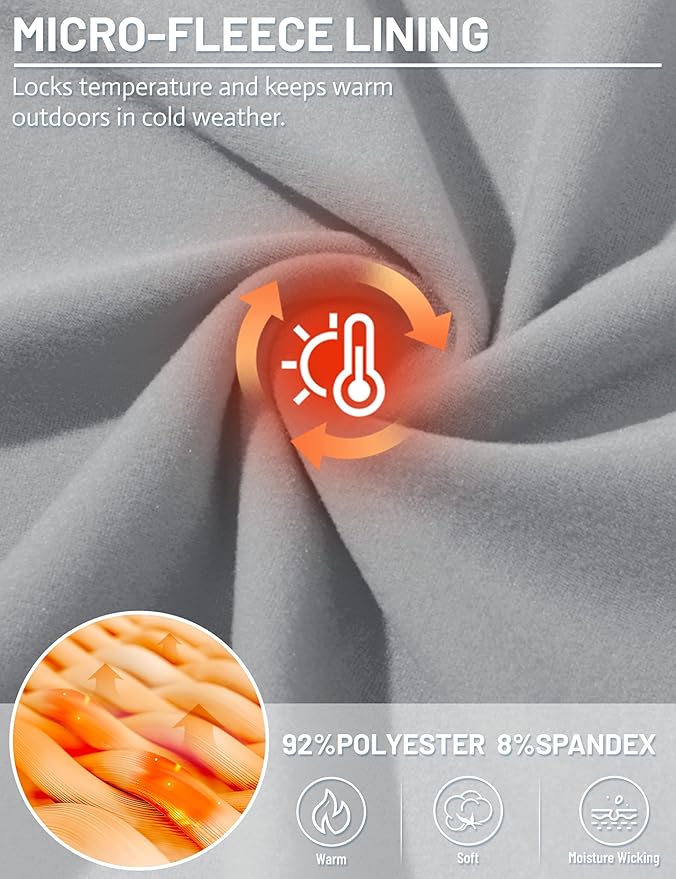 - Warm fabric:Mens long sleeve thermal shirt is made of fleece lined material with 92% Polyester, 8% Spandex to locks your temperature, keeps you warm in cold weather.