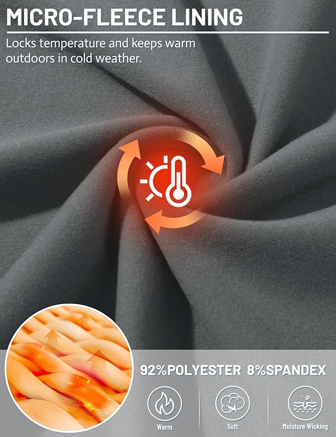 - Warm fabric:Mens long sleeve thermal shirt is made of fleece lined material with 92% Polyester, 8% Spandex to locks your temperature, keeps you warm in cold weather.