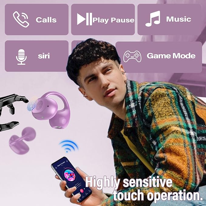 - Open-Ear Comfort & Featherlight Fit: Wireless Earbuds Featuring an innovative C-shaped ear hook and soft, skin-friendly silicone, each earbud weighs only 4.9g for a barely-there wearing experience. The open-ear design keeps them securely in place while allowing you to hear your surroundings, making them a safe and comfortable choice for workouts, commuting, and outdoor activities.