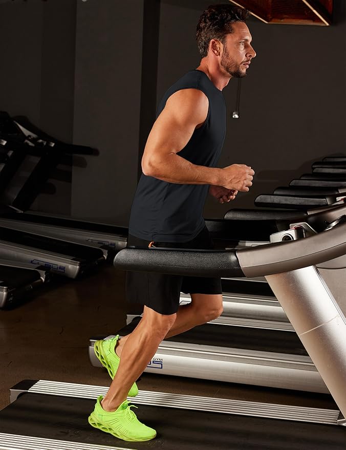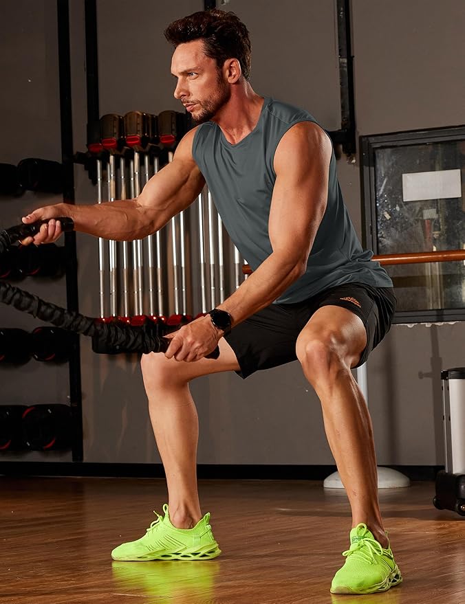 • Athletic Desgin: Crewneck design, the tag-free label and double needle hem. The Sleeveless design covers the essential parts while still keeping your arms well-ventilated. Helps move your arms freely and work out comfortably.