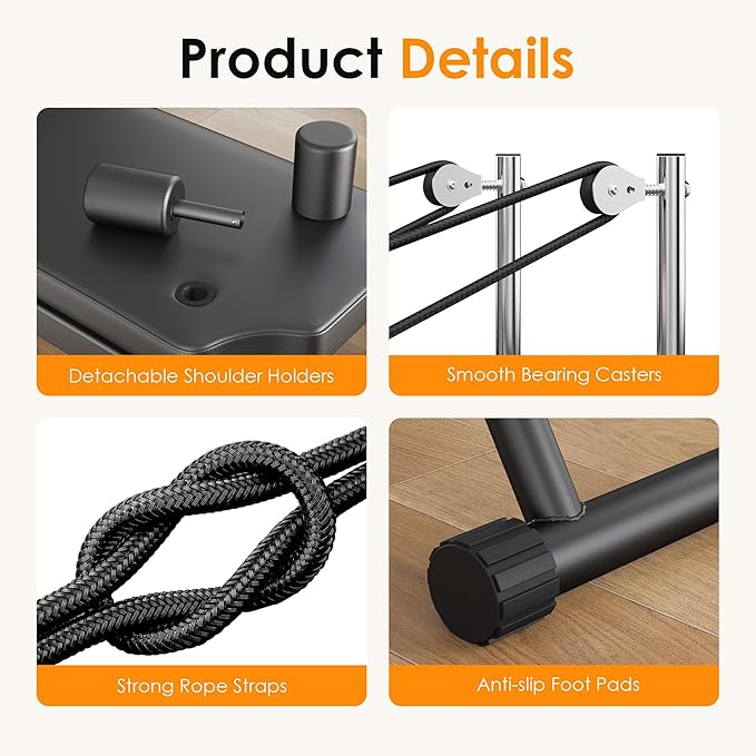 - FOLDABLE PILATES MACHINE- For homes or studios with limited space, this foldable reformer will certainly be a nice choice.The compact design can be placed anywhere in your home to save space. Built-in wheels make it easy to move the reformer.