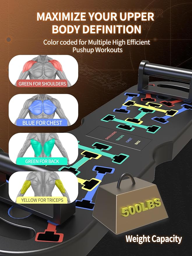 - 💪【Scientific Design】Color-zoned training board designed based on sports data. This push up board not only improves the exercise efficiency of the core muscle groups by 80%, but also specializes in training the chest, triceps, shoulders, back and other parts to achieve max effect.The newly upgraded 20 anti-slip points ensure zero movement of the fitness equipment on wooden boards, tiles, or fitness mats, allowing you to focus 100% on exercise.