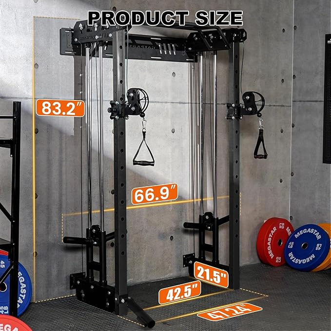 - Compact Space-Saving Design: Designed for tight spaces, this wall-mounted rack extends only 21.5 inches from the wall, maximizing your gym area without sacrificing functionality. The 83.5-inch height ensures optimal range of motion for cable exercises, making it perfect for apartments, garages, and compact gym spaces—20% more compact than traditional racks.g it perfect for apartments, garages, and compact gym spaces—20% more compact than traditional racks.