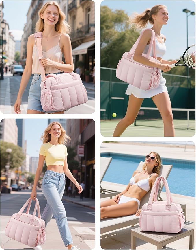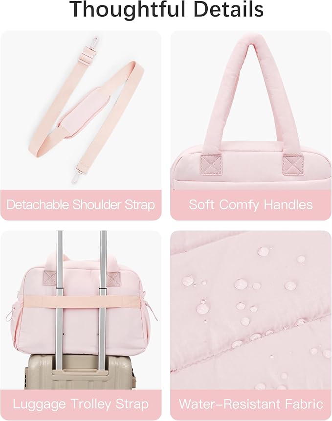 • Chic & Versatile: The oscaurt Puff weekender bags for women perfectly blends style with function, allowing you to express your unique fashion sense while effortlessly carrying all your essentials. Switch between adjustable crossbody, shoulder, or handheld carry. Cloud-soft top handles actively prevent shoulder digging and pressure, delivering exceptional comfort