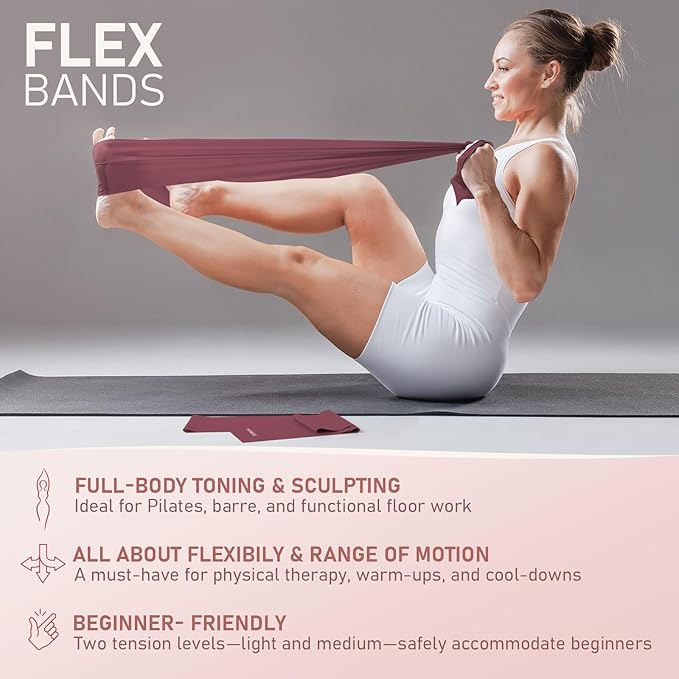 • 3+2 Resistance Bands System- With three non-slip mini bands and two flex bands offering light to heavy tension, this Pilates equipment set accommodates beginners to intermediate users for strength training, rehabilitation, and booty workouts.