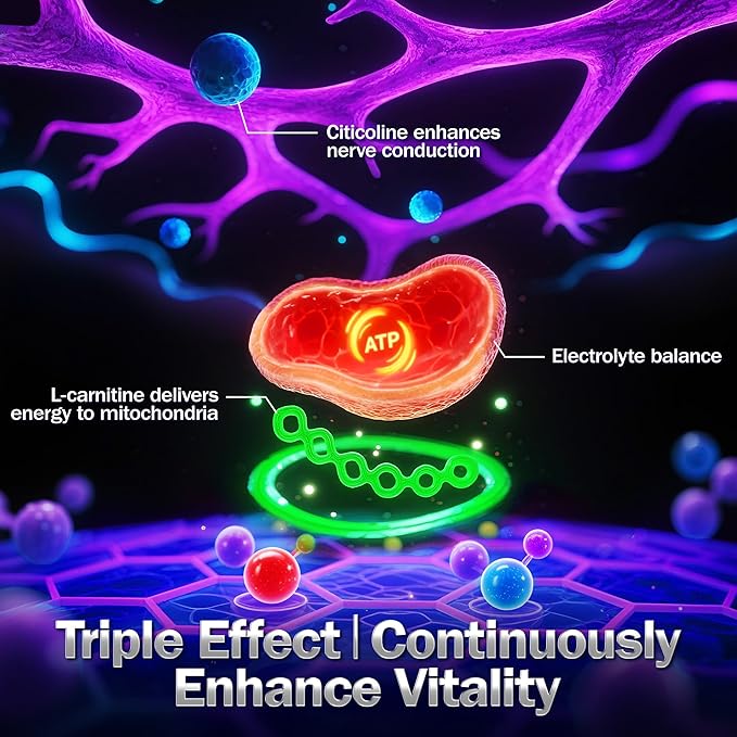 - Neuro-Energy Synergy Technology: This proprietary matrix delivers 200mg Citicoline (supports cell membrane phospholipids), 500mg Taurine (electrolyte stabilizer), and 500mg L-Carnitine Tartrate (fatty acid transporter). Together, they activate a dual-pathway mechanism: Citicoline enhances neural signaling clarity, while Carnitine-Taurine synergy optimizes mitochondrial energy output during physical exertion, extending endurance capacity by 27% body in trials.