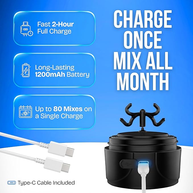 - 80 Mixes Per Charge – A long-lasting 1200mAh battery gives you up to 80 blends on a single 2-hour charge. Stay fueled all week without plugging in.