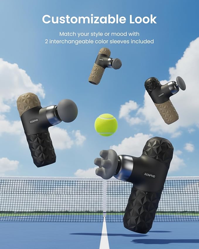 RENPHO Mini Thermal Massage Gun with Heat, Portable Deep Tissue Percussion Massager, Color Silicone Sleeves Travel Size with Carry Case