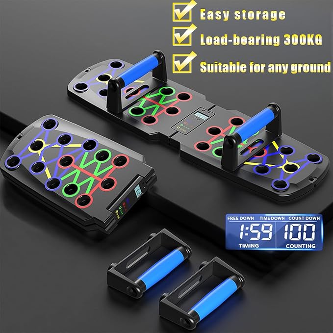- 【Unique Intelligent Counting and Timing Function】The new generation push-up bar has an intelligent counting and timing function, including three mode options: FREE DOWN, TIME DOWN and COUNT DOWN. It tracks your movements in real time, allows precise control of your exercise intensity, so that you can fully devote yourself to exercise and don't have to worry about counting errors. It is a good helper for you to do push-ups.
