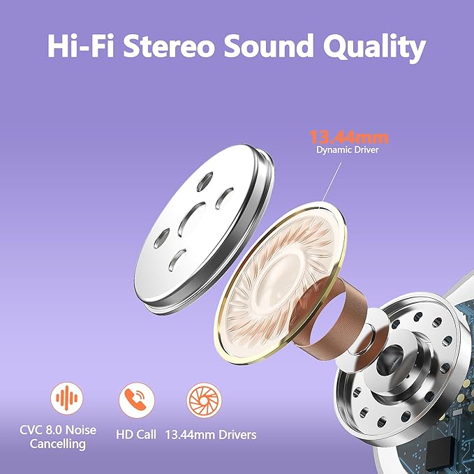 - HIGH FIDUCIENT SOUND QUALITY AND ENC CLEAR CALLS: With 13 mm dual-layer graphene diaphragm drivers and equipped with hybrid ENC noise cancellation and Hi-Fi technology, Q22 bluetooth earbuds unique bass enhancement algorithms feature powerful bass and pristine sound, for a breathtaking sound experience that is as immersive as it is acoustic; Equipped with a high-quality ENC noise-cancelling microphone that passively eliminates 90% of background noise, you can enjoy a first-class call experience wherever you are