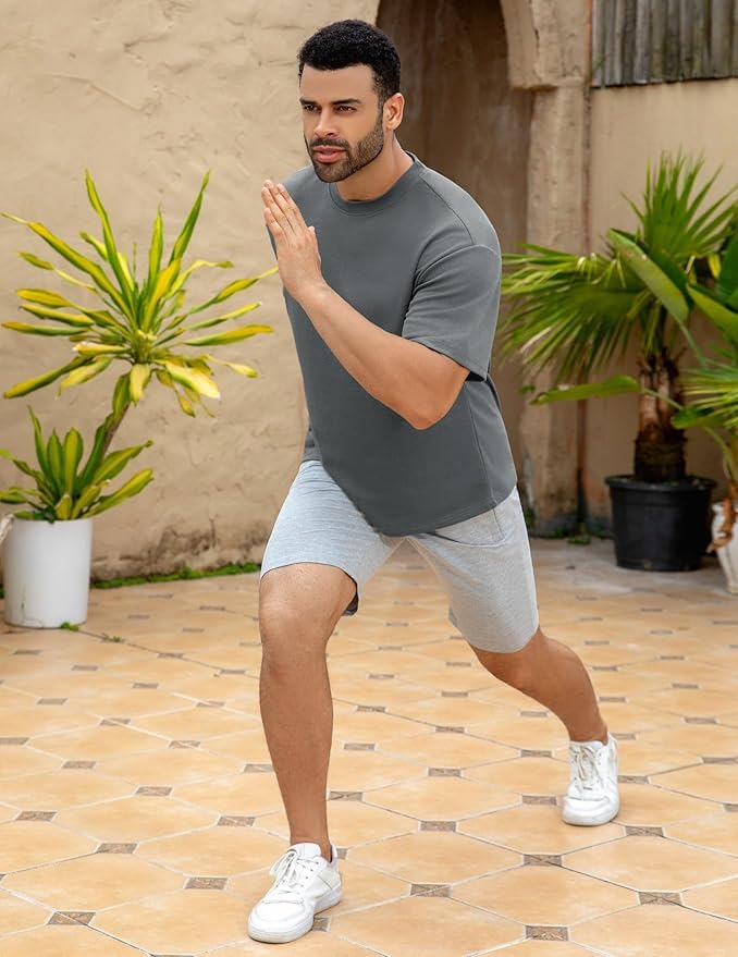 • Design:mens athletic tshirt-drop shoulder,crew neck,oversize design,solid color,loose fit tshirt.