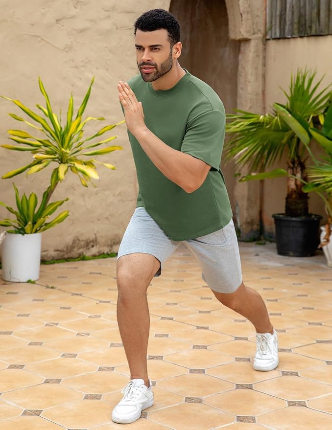 - Design:mens athletic tshirt-drop shoulder,crew neck,oversize design,solid color,loose fit tshirt.
