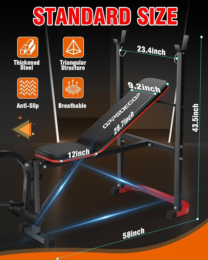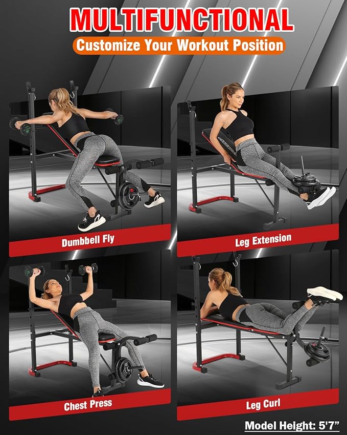 - 【Full Body Workout Bench】The weight bench is a versatile piece of fitness equipment designed for beginners and users with smaller builds, which can help you work out your arms, chest, abdomen, and legs,allowing you to achieve a comprehensive workout at home.