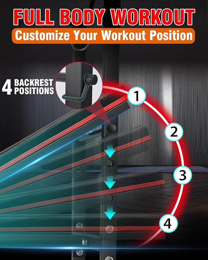 - 【Quick Adjustments, Enjoy Fitness】The backrest of this weight bench offers 4 adjustable angles, allowing you to tailor it to different exercises and comfort levels. The preacher pad of this weight bench has 3 adjustable heights, helping you find the best support for various curls, enhancing workout effectiveness