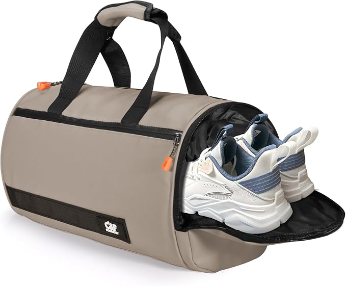 C&F BOGMOST Small Travel Duffel Bag,Compact Sports Small Gym Bag with Shoes Compartment,Lightweight Duffel Bag for Men & Women,Personal Item Travel Bag Weekender Bags for Travel Sports Gym -Khaki