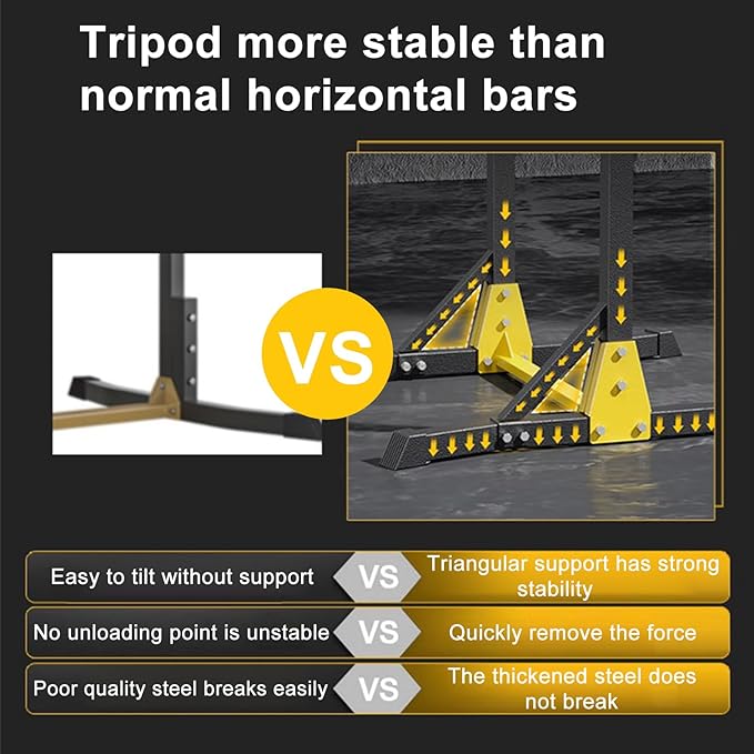 - ✅Sturdy and Durable Construction: Built with high-quality, thickened stee, supporting weight capacities up to 450 lbs. Features like safety locknuts, sturdy frame connections ensure stability without wobbling during intense workouts like pull-ups, dips, or push-ups.