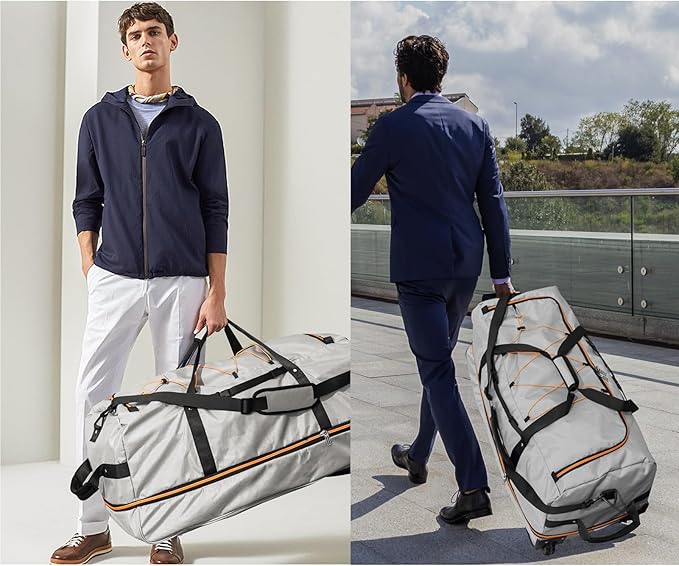 110L/140L Expandable Soft-Sided Foldable Duffle Bag with 2 Rubber Wheels,Packable 32” Rolling Carry-On with Multi-Pockets & Compartments,Grey