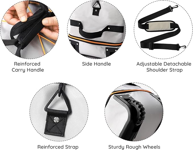 - Water-resistant Oxford fabric; 2 heavy-duty rubber wheels for smooth mobility