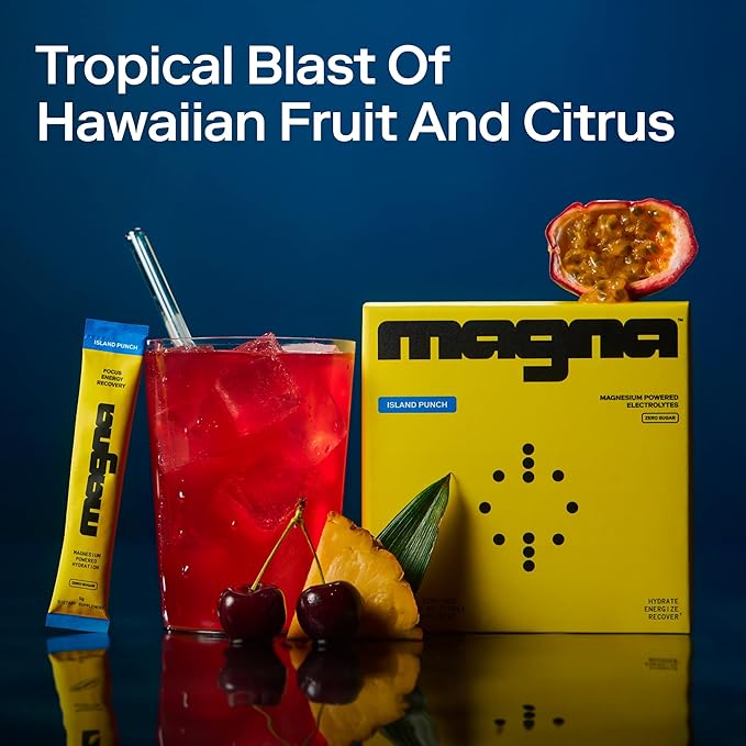 MAGNA Electrolytes Powder Drink Mix for Hydration, Energy & Focus Support with Magnesium L Threonate, Sodium, Potassium, Vitamin D, B6 & B12, Sugar Free, Island Punch Flavor, 28 Servings